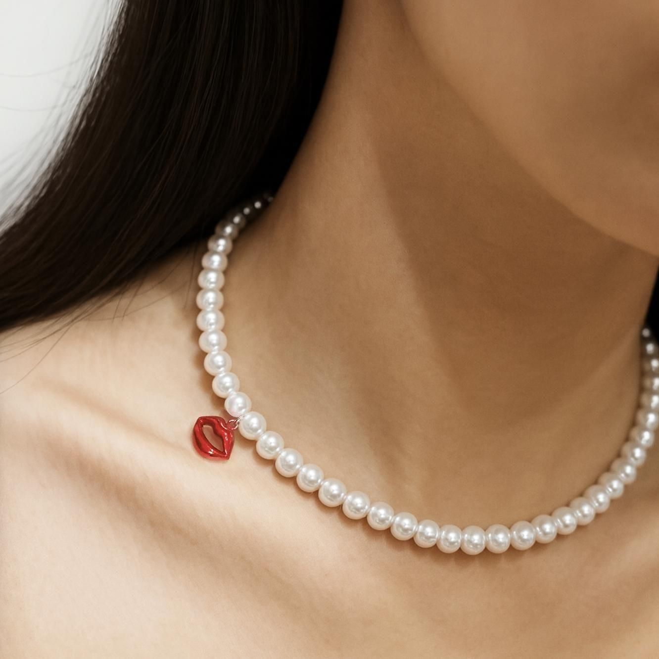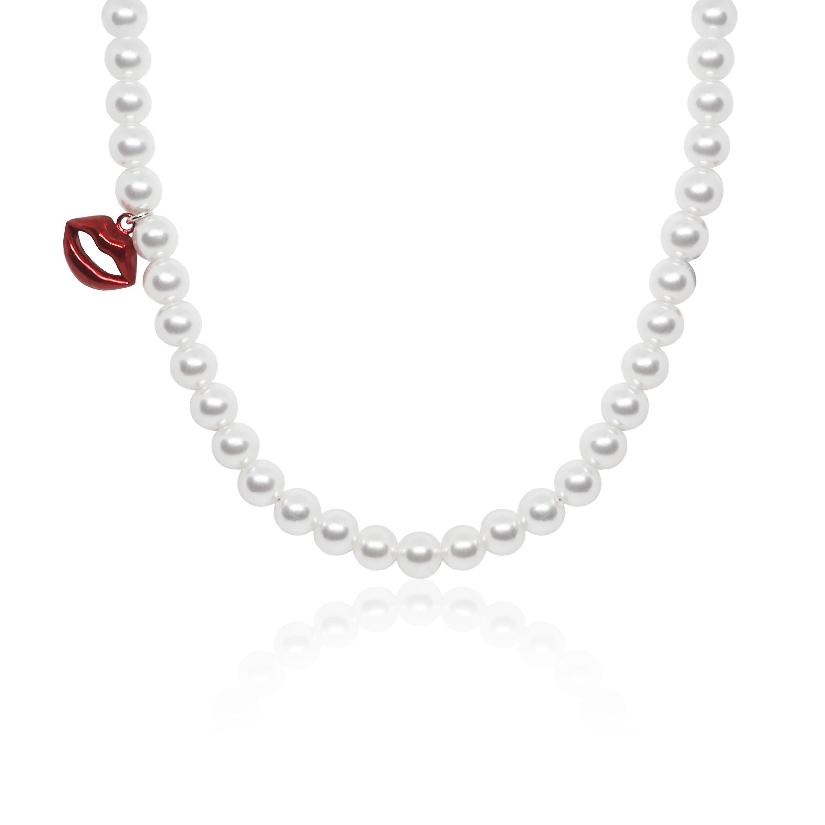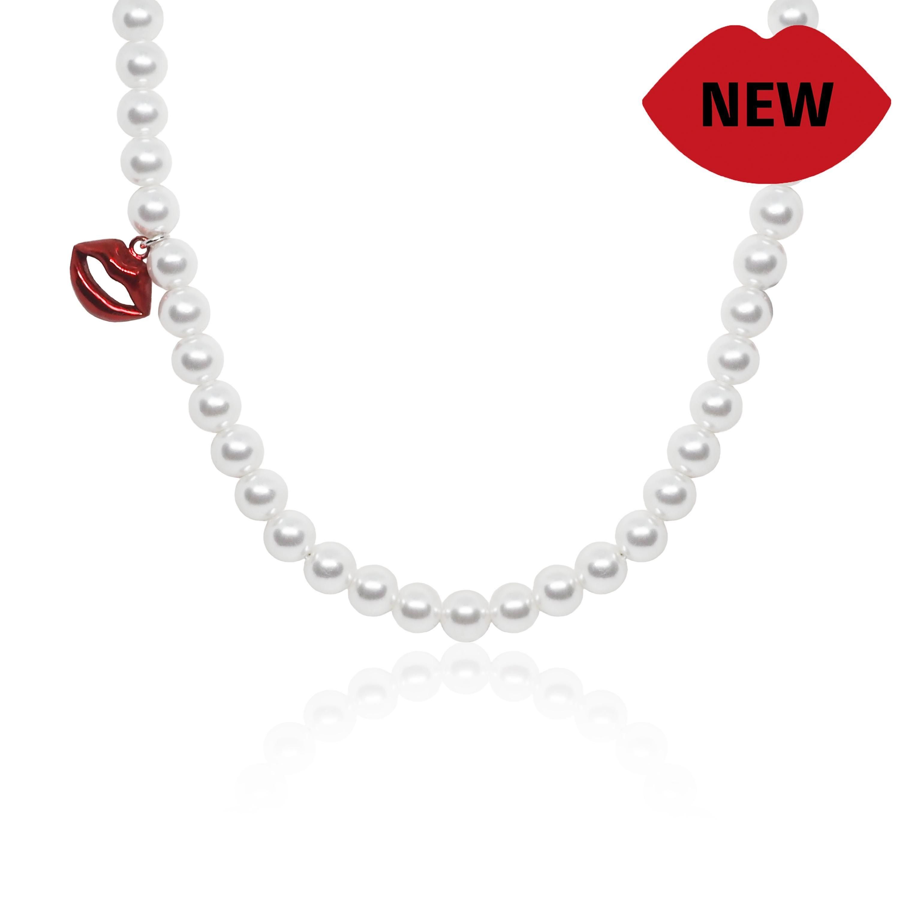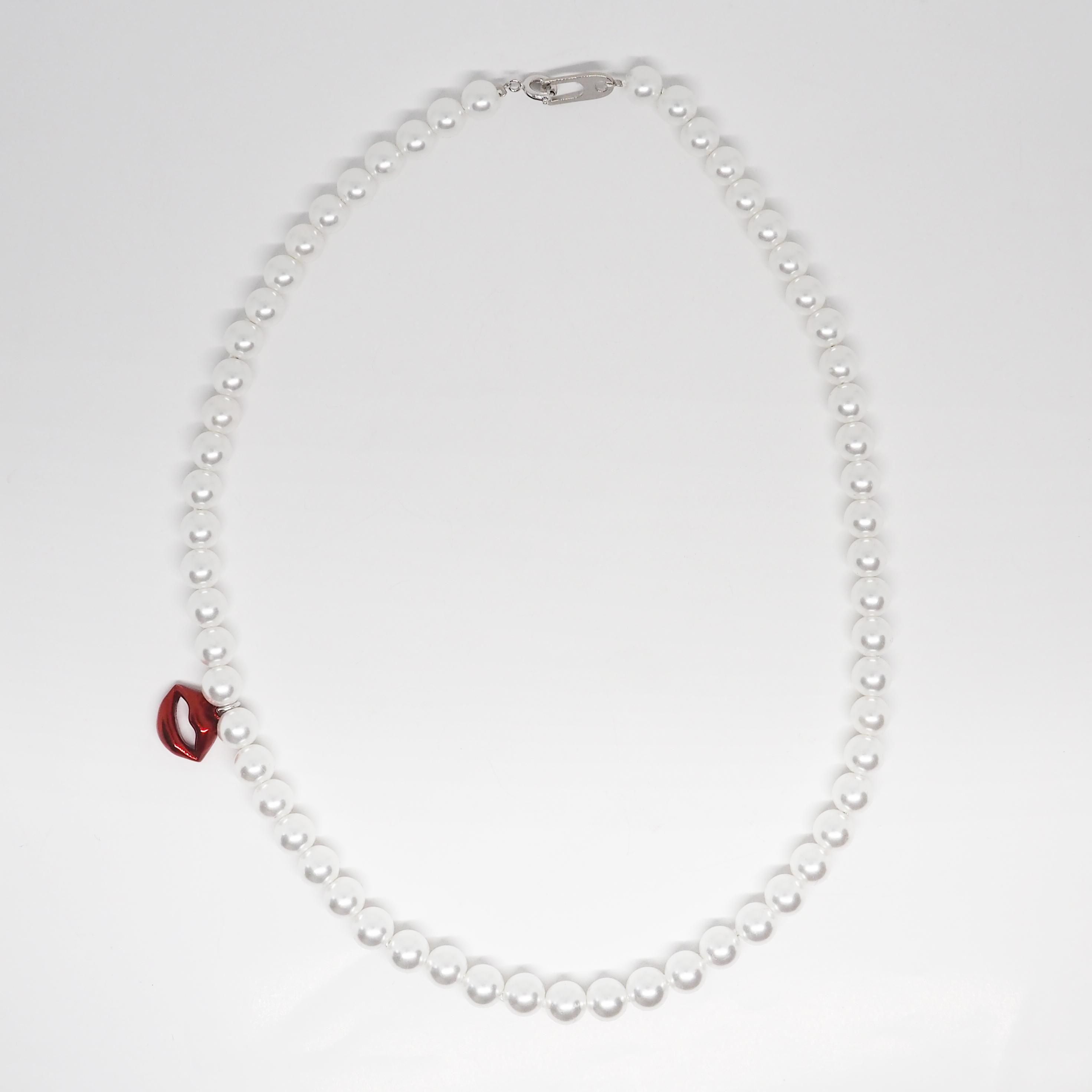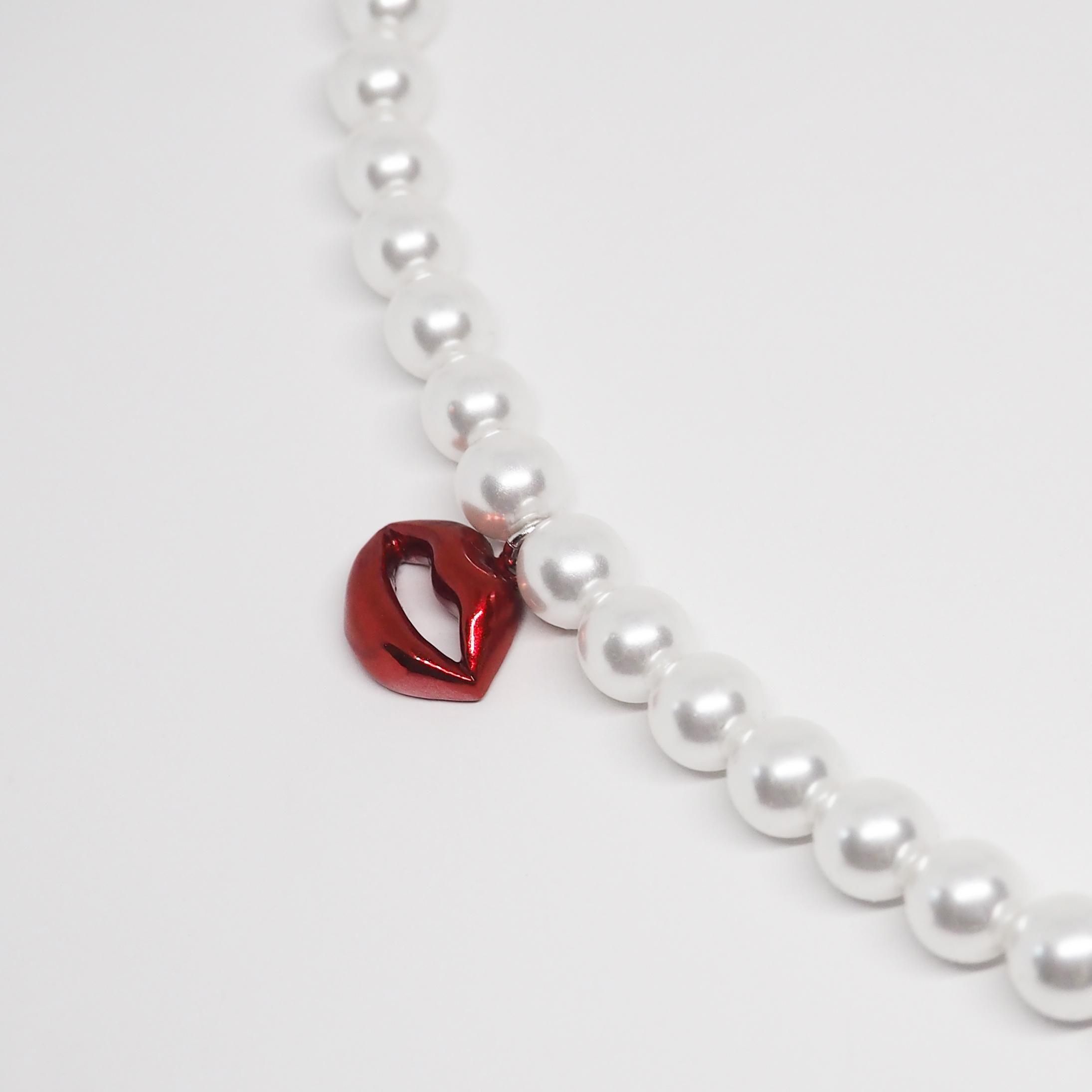 KISS TRAP PEARL NECKLACEは、クラシカルな一連パールに妖艶なリップチャームを忍ばせたネックレス。