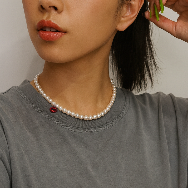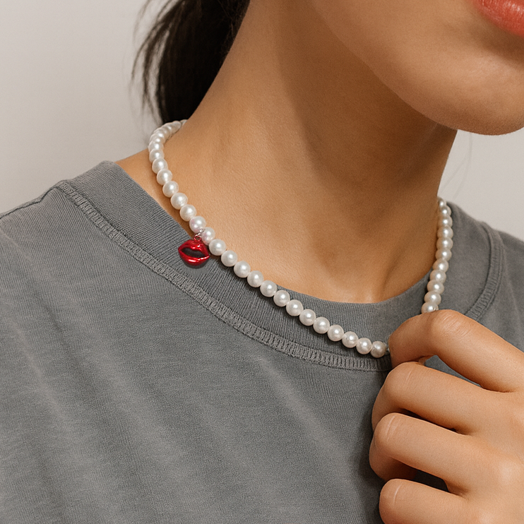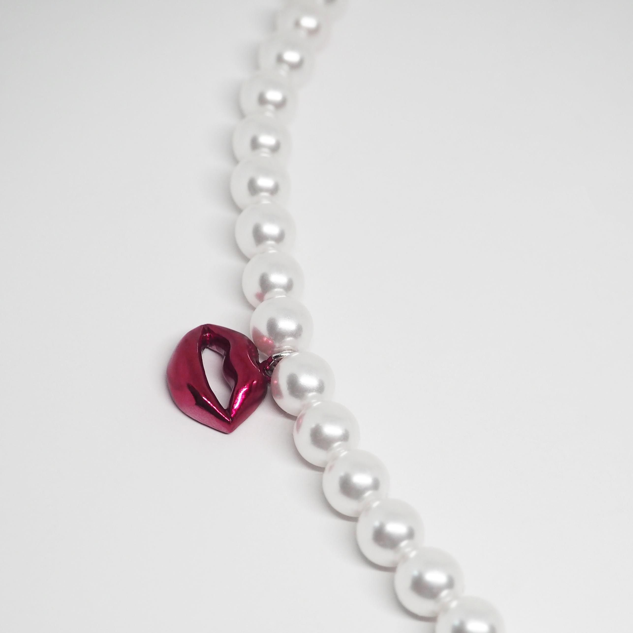KISS TRAP PEARL NECKLACEは、クラシカルな一連パールに妖艶なリップチャームを忍ばせたネックレス。
