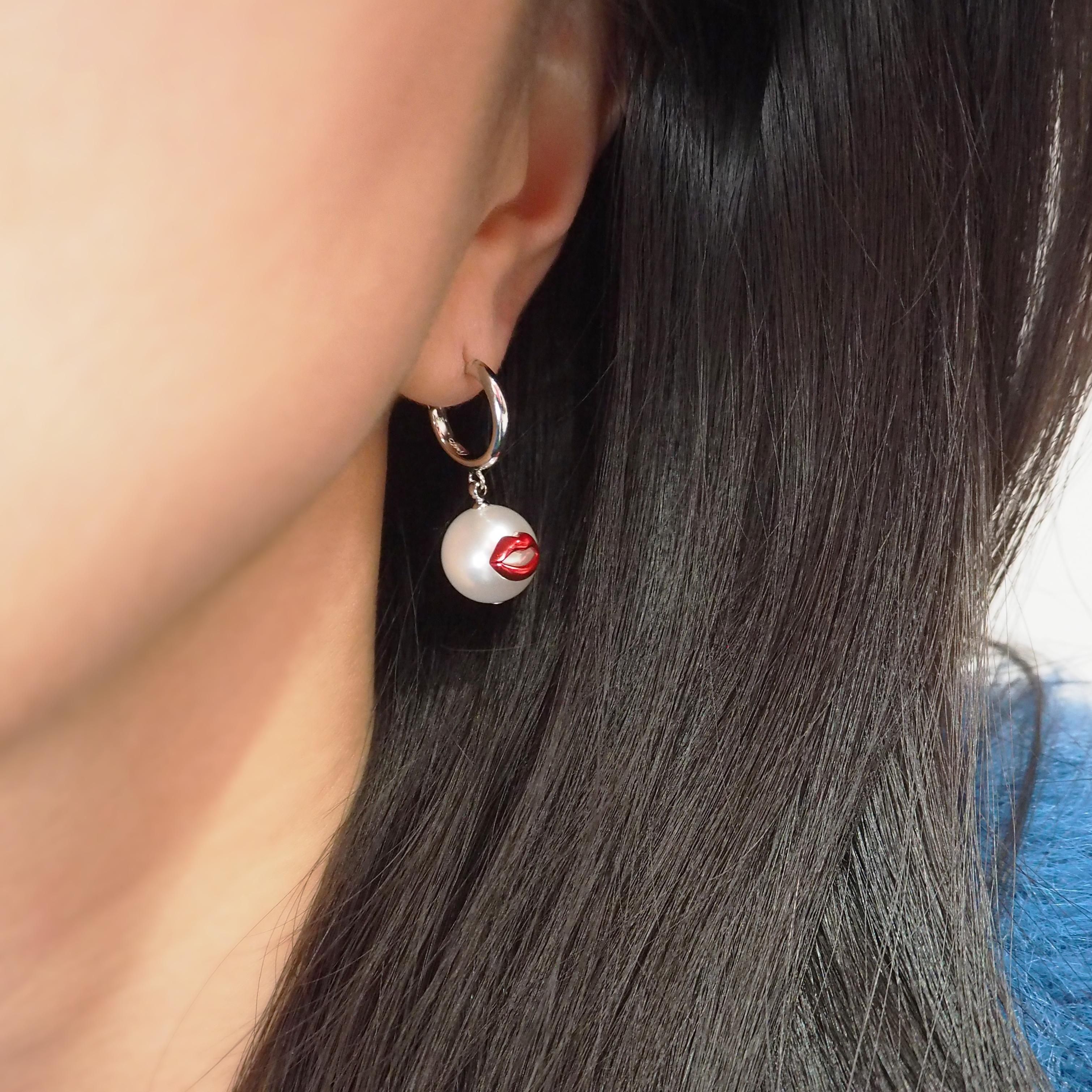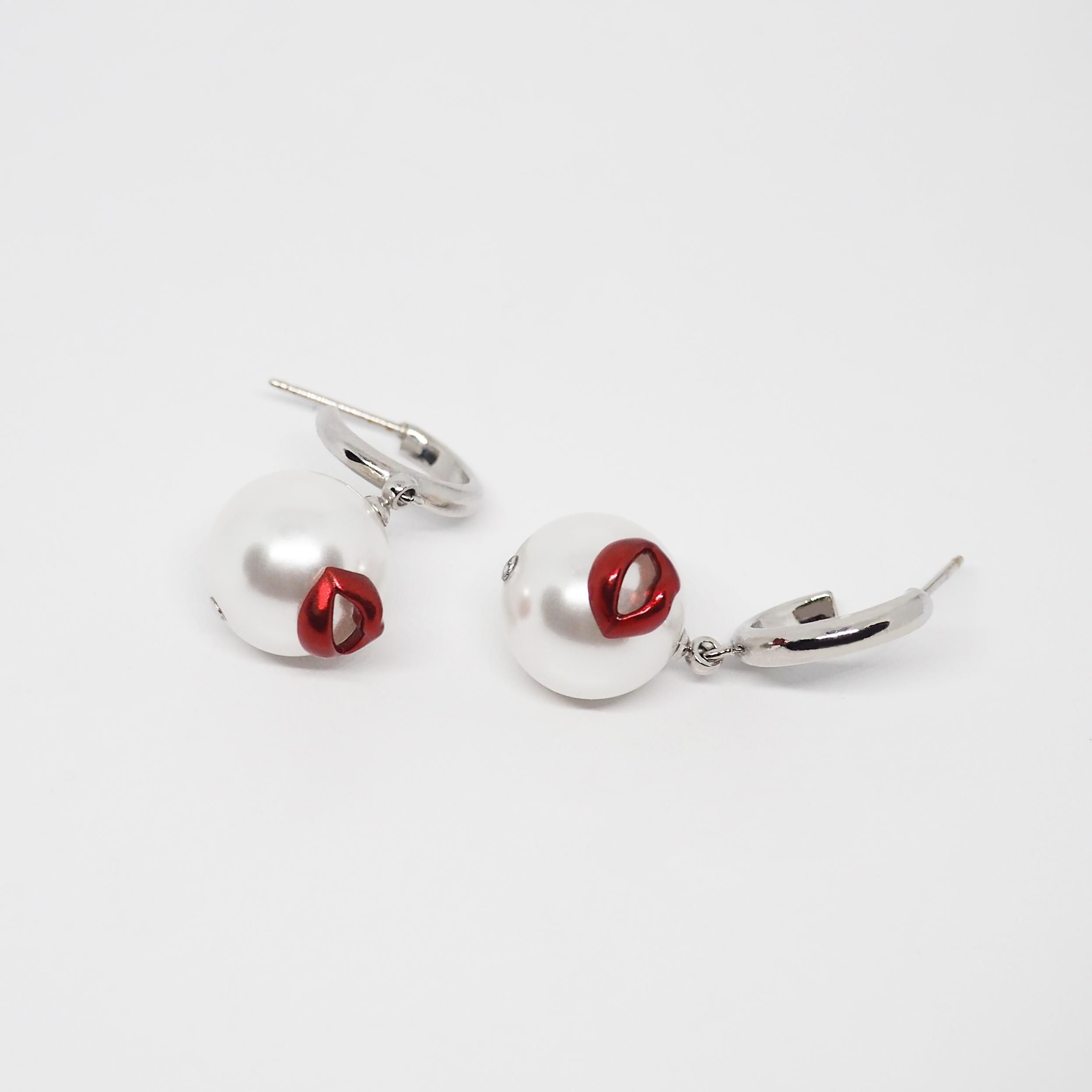 清楚なパールに大胆なリップを忍ばせたフープピアス。上品に見せながら、実は小悪魔的な仕掛けを隠したデザイン。リップモチーフがふと覗いた瞬間、ただのジュエリーじゃない存在感を放ち、あなたの甘さにスパイスを添える“Trap”に。シンプルなスタイルにも映え、コーデを一気にエッジィに引き上げます。