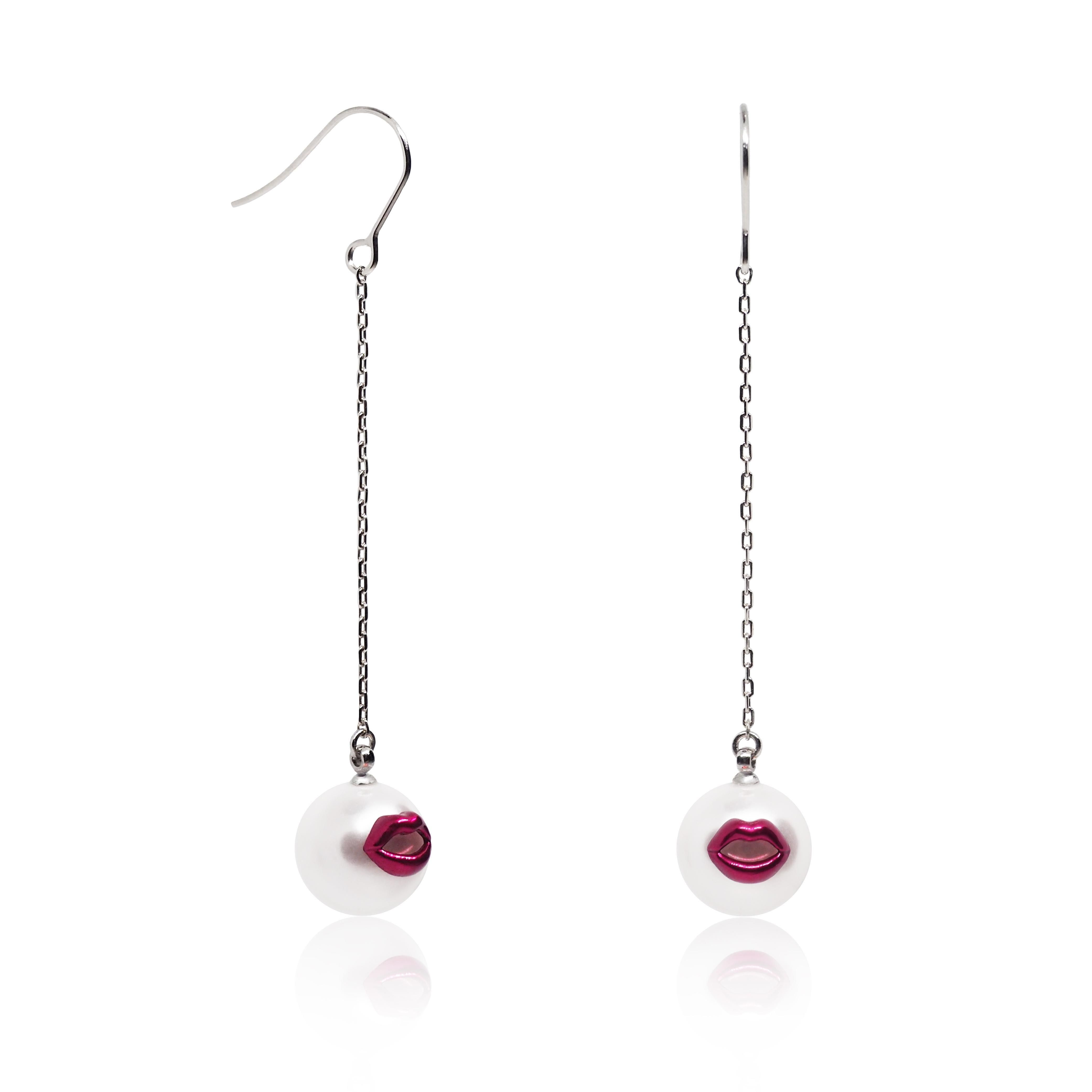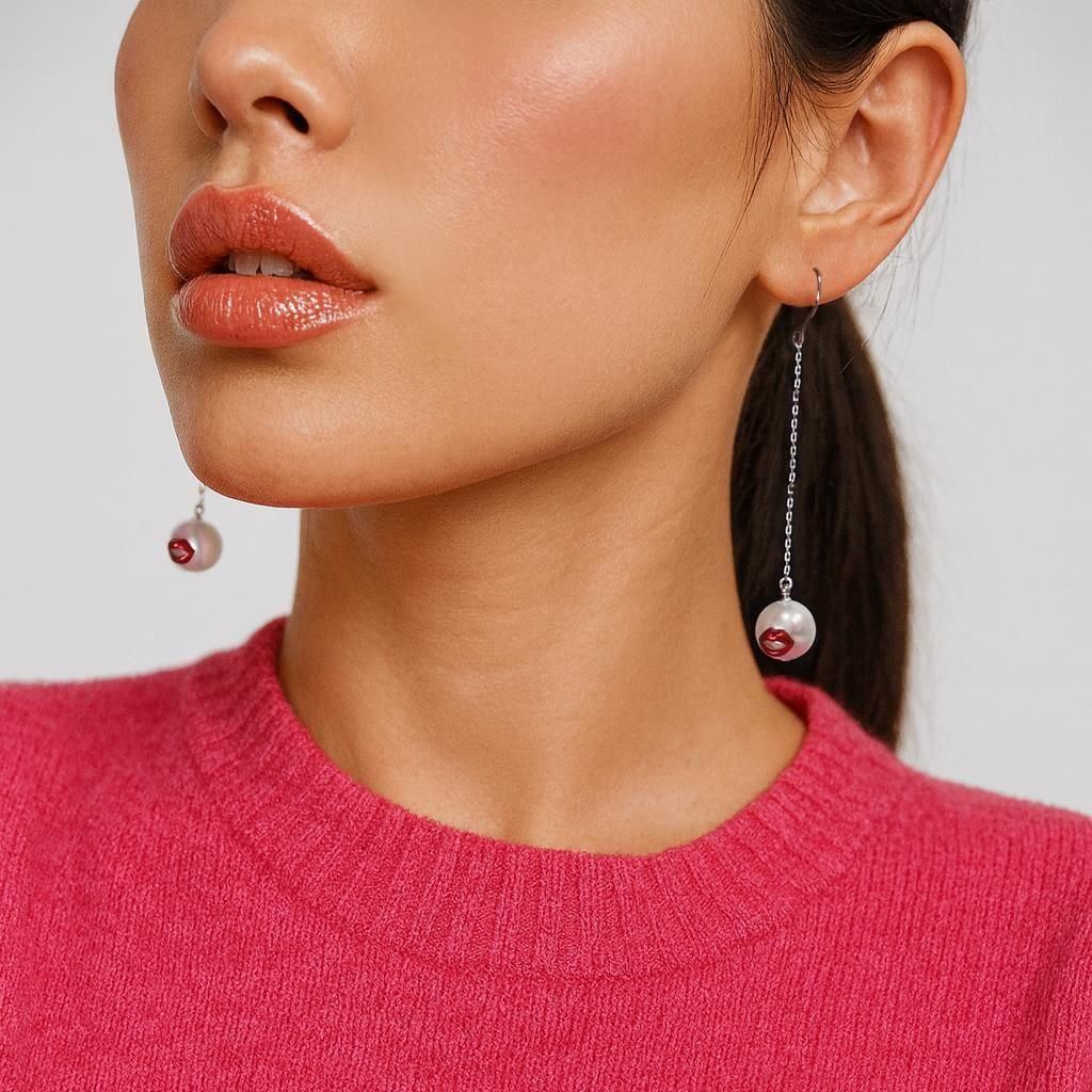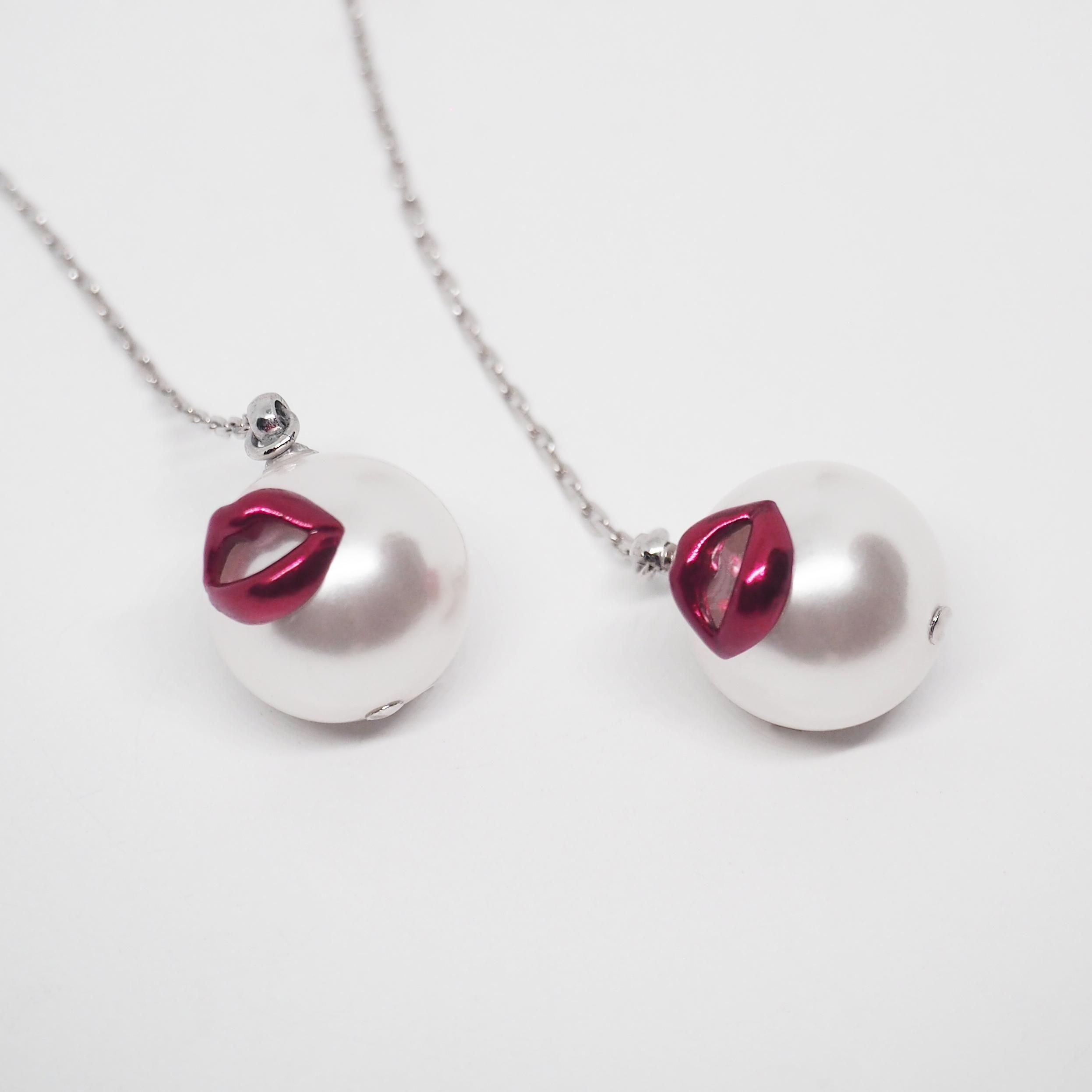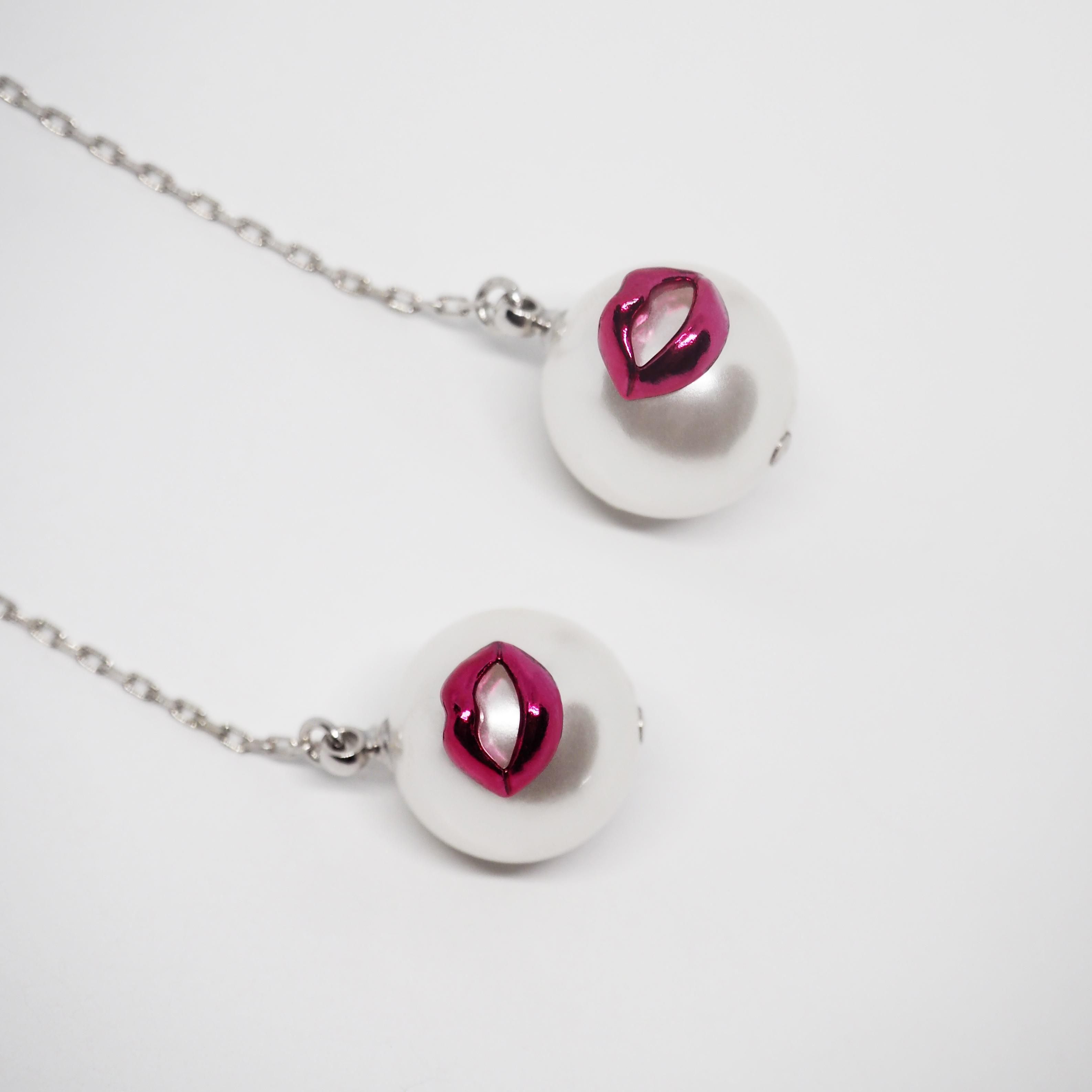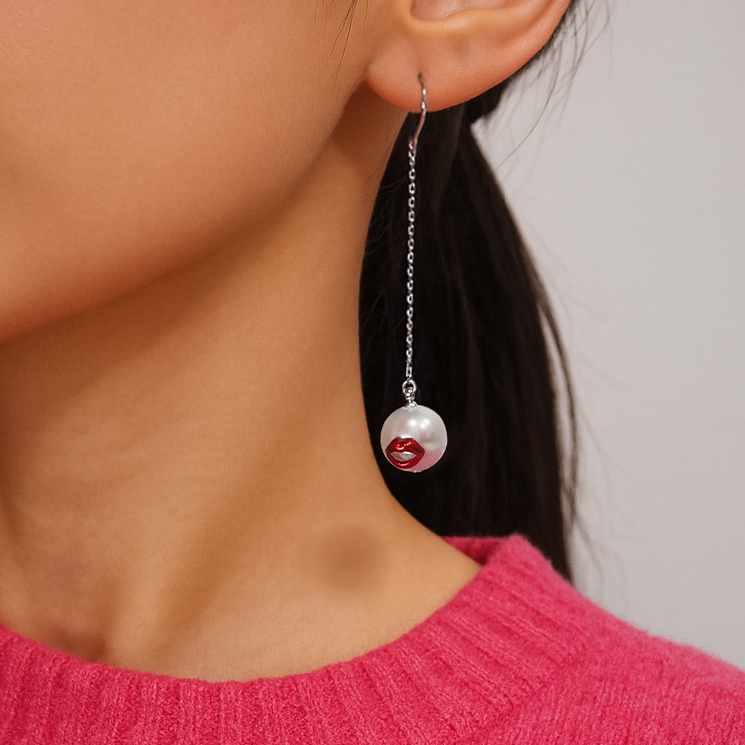 KISS TRAP CHAIN EARRINGは、上品なパールに妖艶なリップを潜ませたロングチェーンピアス。動くたび、きらっと輝くデザインチェーンと艶のあるリップが揺れ、清楚な表情の奥に小悪魔的なニュアンスをのぞかせます。繊細なチェーンが生み出す余韻は、ただの上品さではなく、視線を奪うTrapそのもの。いつものスタイルに加えるだけで、あなたの魅力をドラマティックに引き出します。