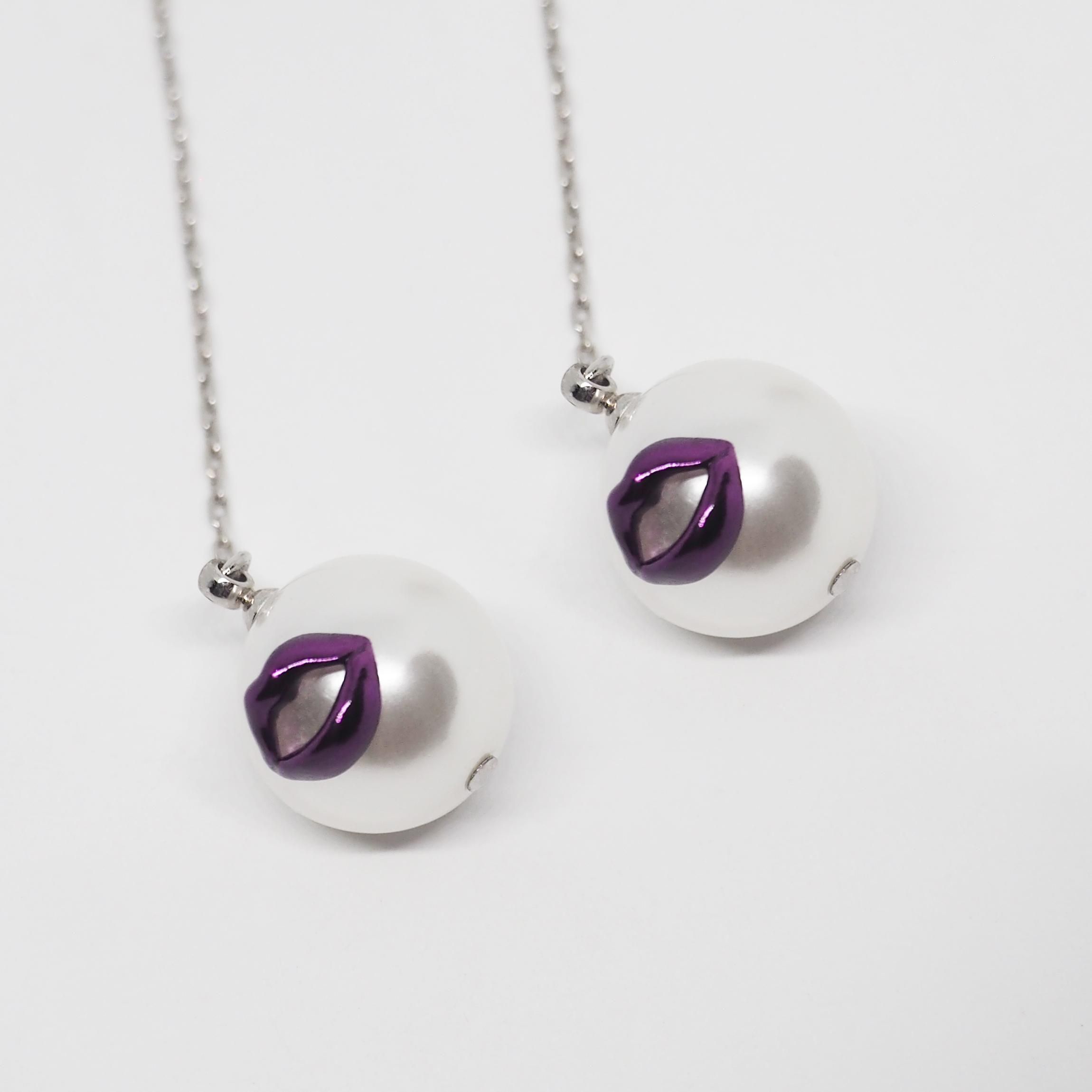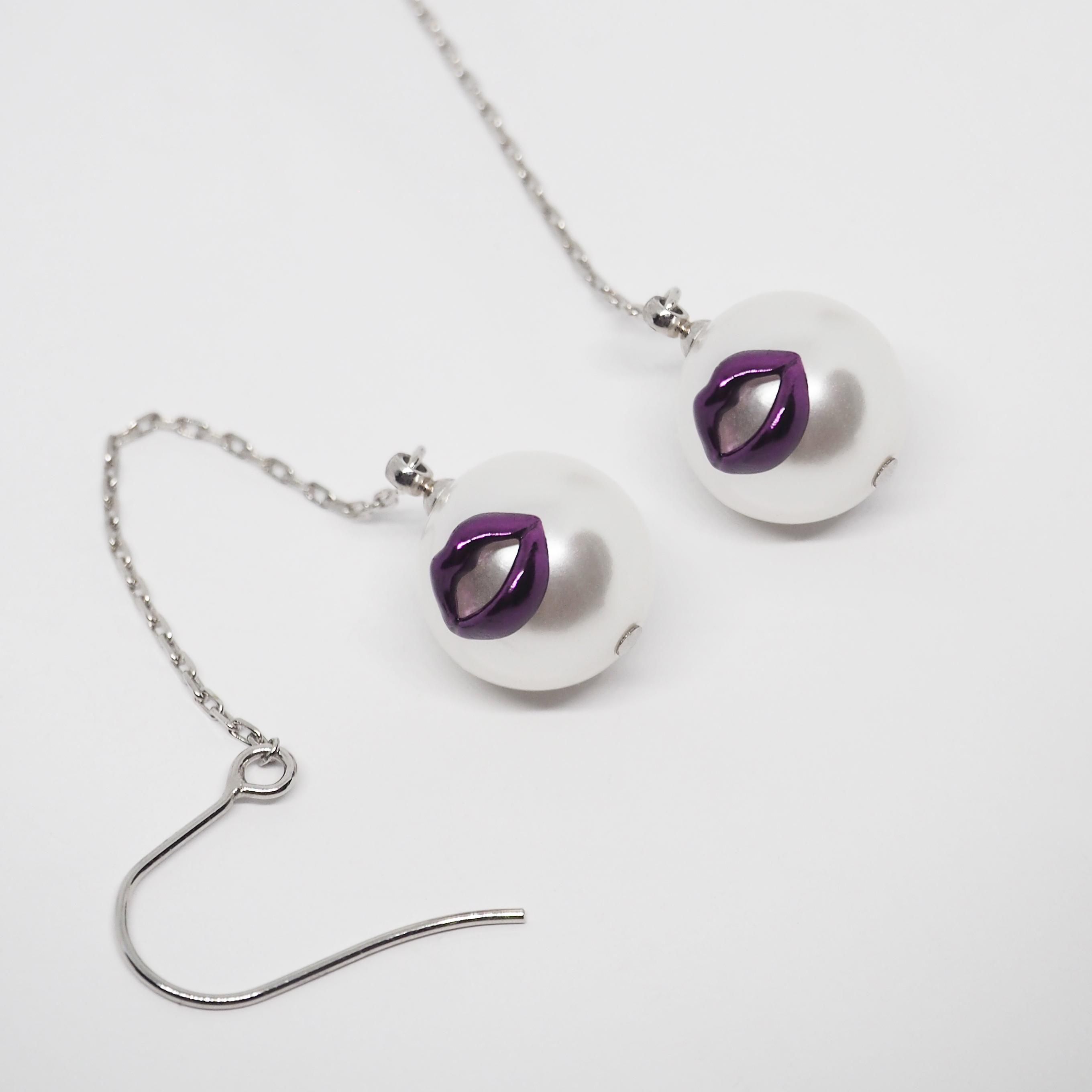 KISS TRAP CHAIN EARRINGは、上品なパールに妖艶なリップを潜ませたロングチェーンピアス。動くたび、きらっと輝くデザインチェーンと艶のあるリップが揺れ、清楚な表情の奥に小悪魔的なニュアンスをのぞかせます。繊細なチェーンが生み出す余韻は、ただの上品さではなく、視線を奪うTrapそのもの。いつものスタイルに加えるだけで、あなたの魅力をドラマティックに引き出します。