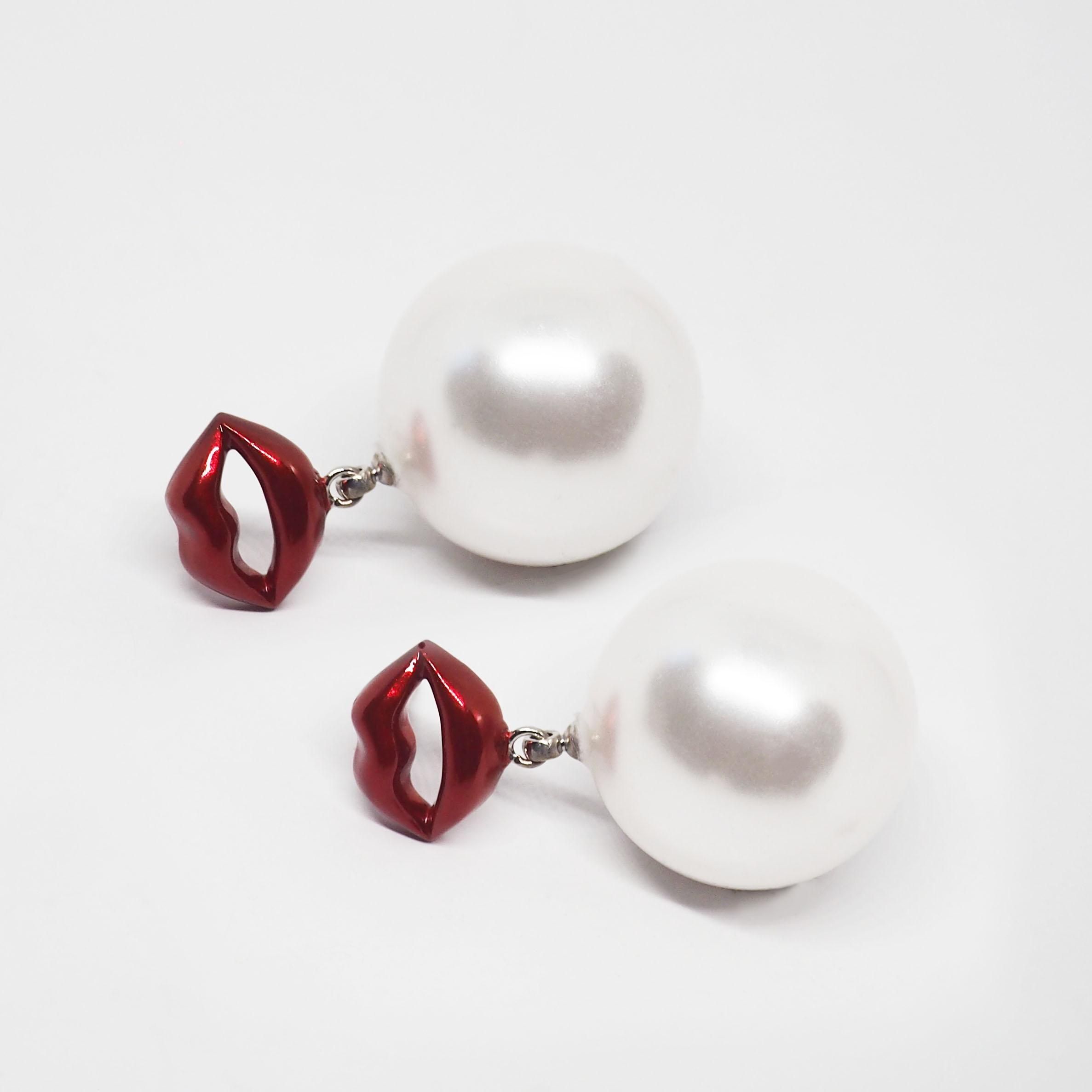 クラシカルな大粒パールに、CHOCOのアイコニックなリップモチーフを合わせた存在感抜群のピアス。上品な雰囲気に“スパイス”を効かせることで、甘すぎず強くなれる絶妙なバランスに。顔まわりに華やかさをプラスするので、シンプルなコーデにも映え、ドレスアップにも相性バッチリ。リップ部分のツヤ感とパールの照りが美しく耳元で輝くピアスです。